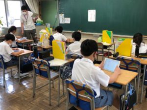 5月末に登録していただいたGoogle Classroomを使用している学級もあります。課題の提出の仕方やmeetでのテレビ通話を体験しました。新型コロナウイルス感染症の第2波に備えて、使用方法を学んでいます。