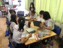京都や奈良での班別分散学習で、どのように行動するかを話し合っています。