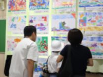 夏休み前の図工の授業で製作した絵画作品を各教室に展示し、親子で対話しながら鑑賞しました。