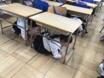 机の下に身を入れて安全を確保する姿、校庭へと速やかに避難する姿、そして静かに次の指示を待つ姿。一つ一つの行動の中に、「自分の命を守る」という意識が確かに表れていました。